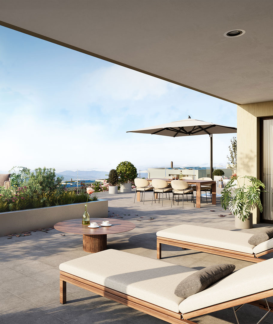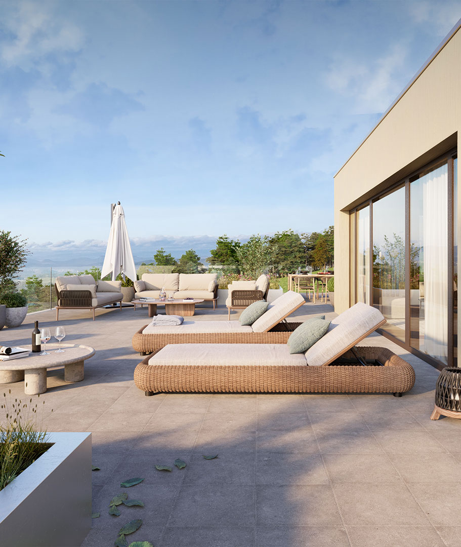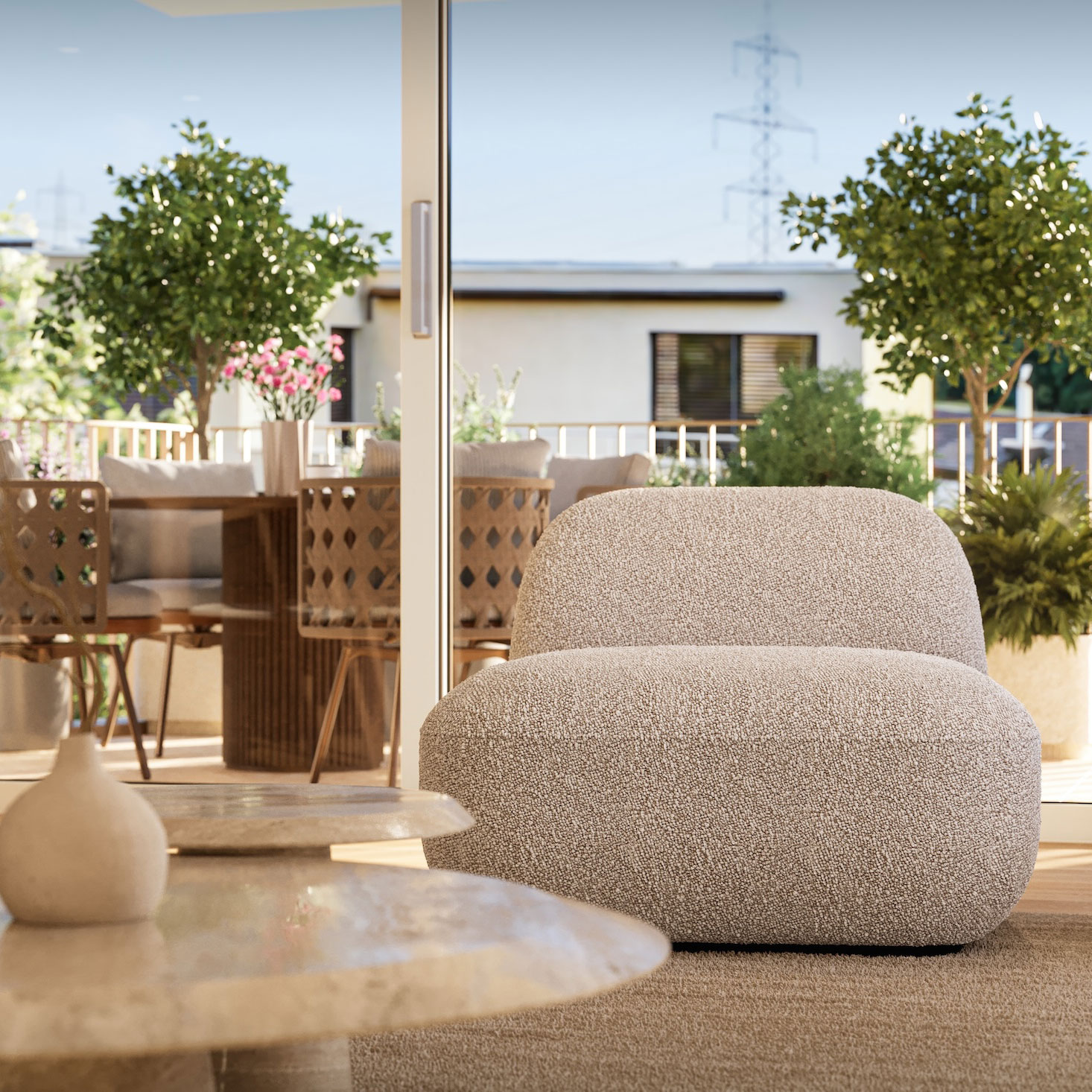 Das Ensemble überzeugt durch eine klare, moderne Architektur, die sich harmonisch in die Umgebung einfügt. Dank der überschaubaren Anzahl von sechs Einheiten wird ein hohes Mass an Privatsphäre gewahrt. Offene Grundrisse und grosszügige Aussenflächen wie Balkone, Terrassen oder Sitzplätze schaffen ein Gefühl von Weite und Leichtigkeit. Jede Wohnung ist als privates Refugium konzipiert und bietet viel Komfort für ein entspanntes Wohnerlebnis.