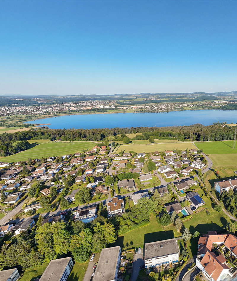 Das Neubauprojekt «Im Geeren» entsteht in einem ruhigen, etablierten Wohnviertel von Ebmatingen. Die Umgebung ist geprägt von Einfamilien- und kleinen Mehrfamilienhäusern und gepflegten Gärten, die ein harmonisches Ortsbild schaffen. Dank der leichten Hanglage des Grundstücks geniessen Sie schöne Ausblicke auf die umliegende Landschaft. Der Alltag lässt sich hier äusserst bequem gestalten: Das Dorfzentrum ist schnell erreichbar, und wichtige Infrastrukturen wie Schulen, die Post sowie Einkaufsmöglichkeiten befinden sich in unmittelbarer Nähe. Auch die Anbindung an den öffentlichen Verkehr ist durch nahegelegene Bushaltestellen optimal gewährleistet.
