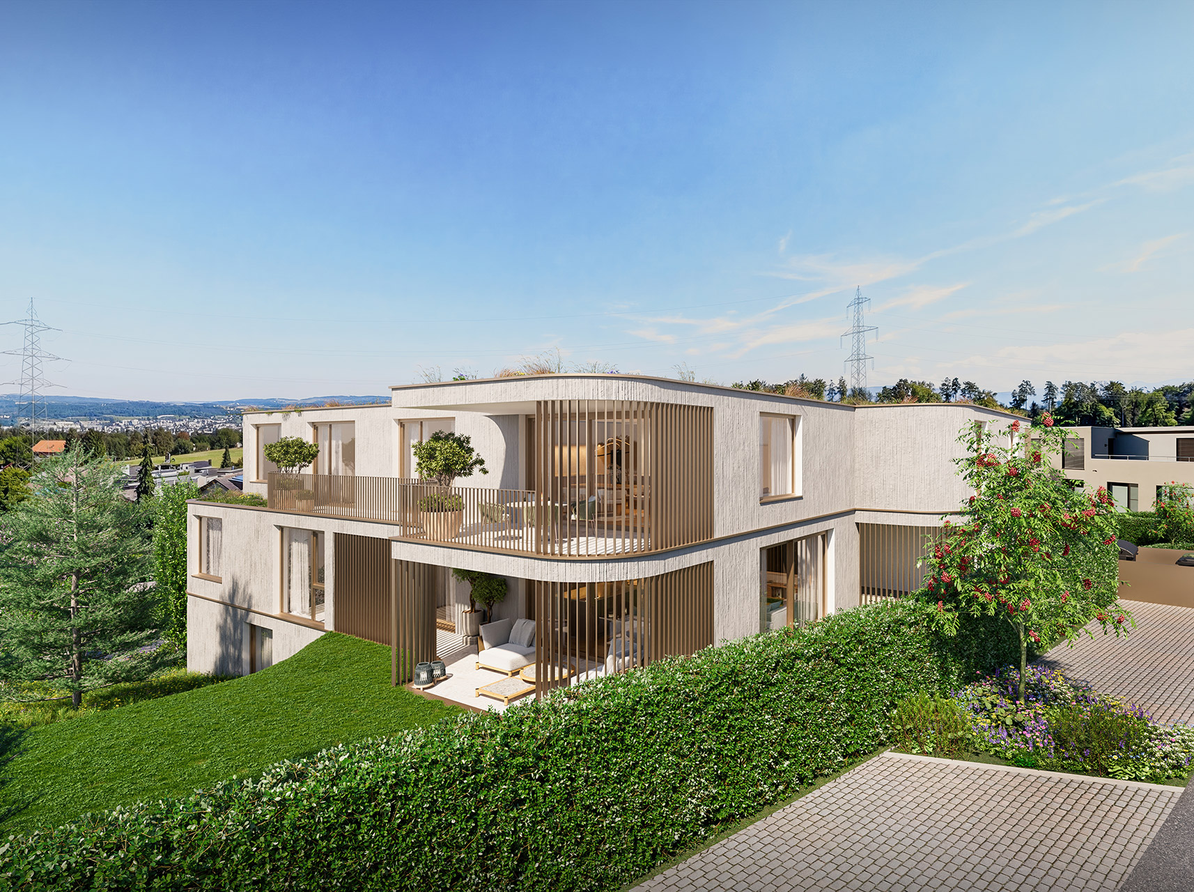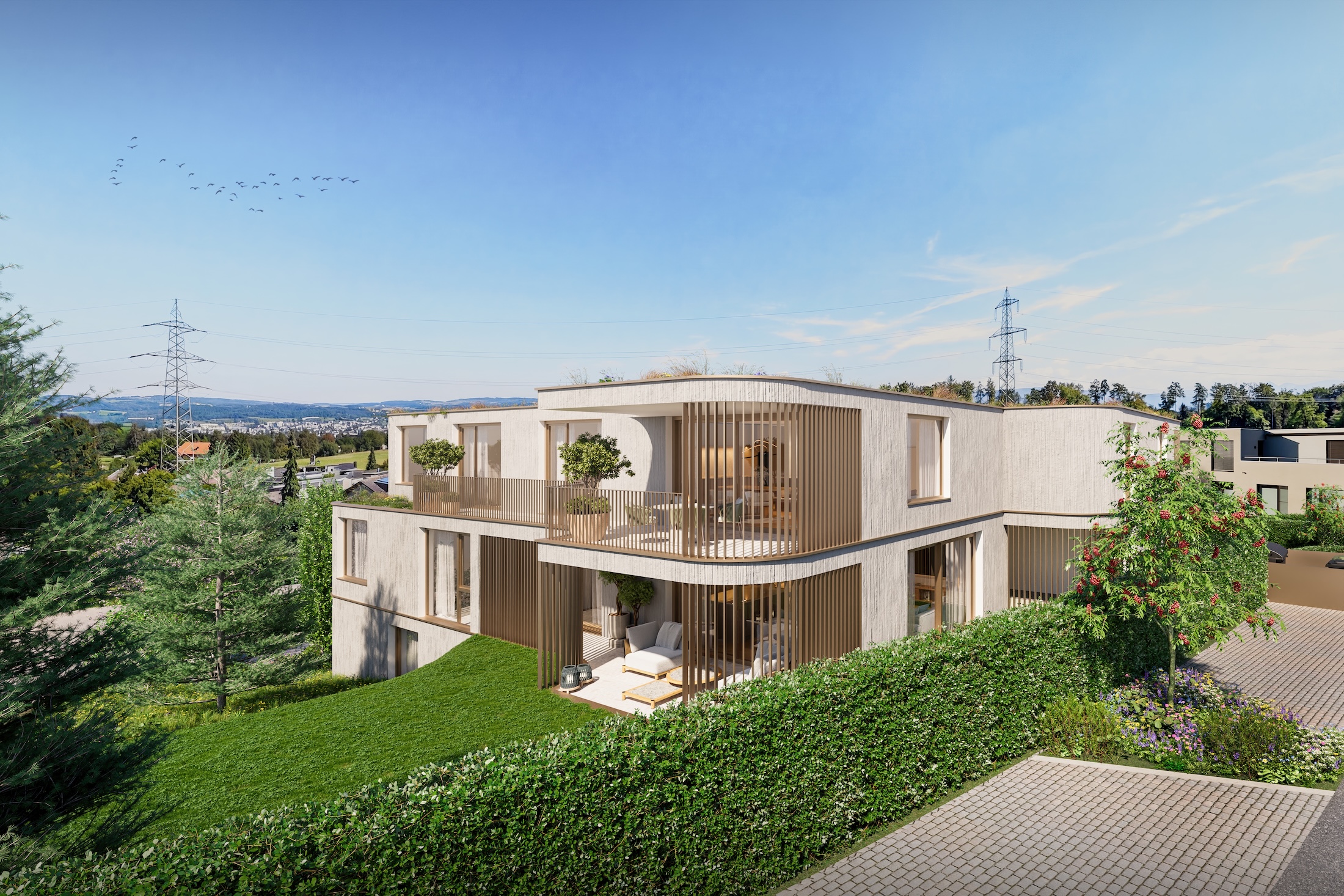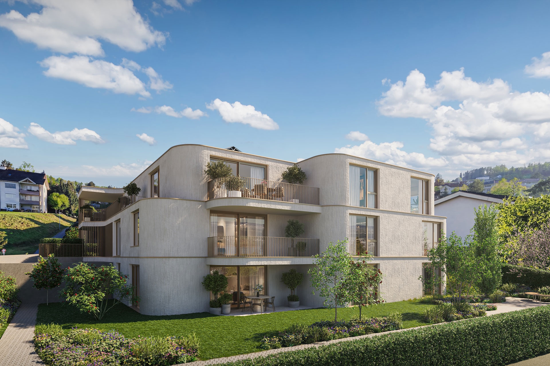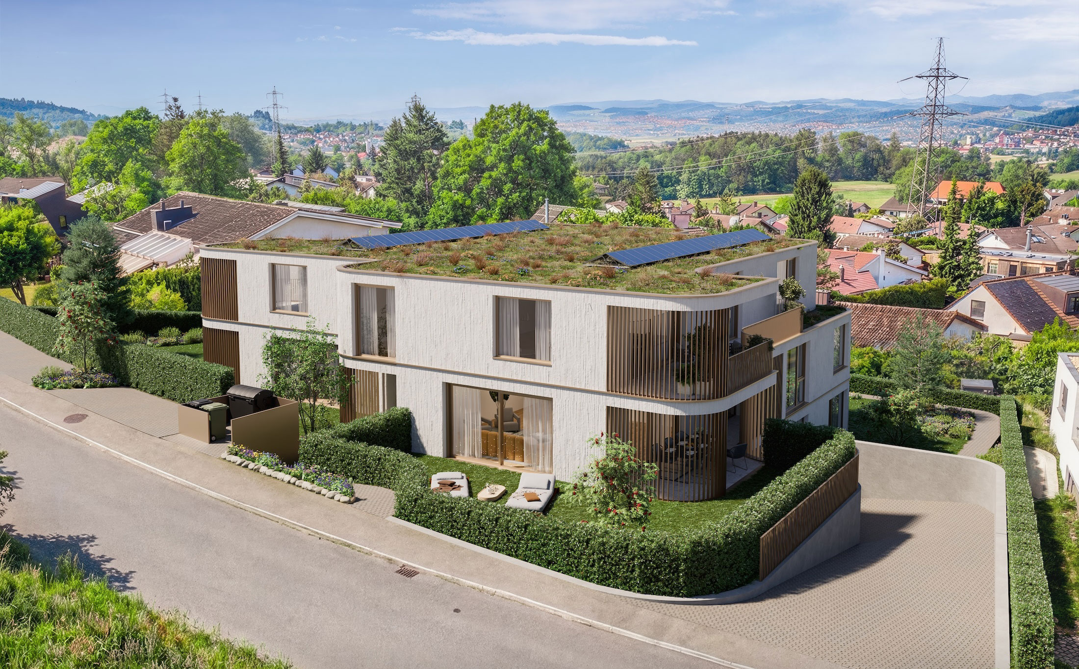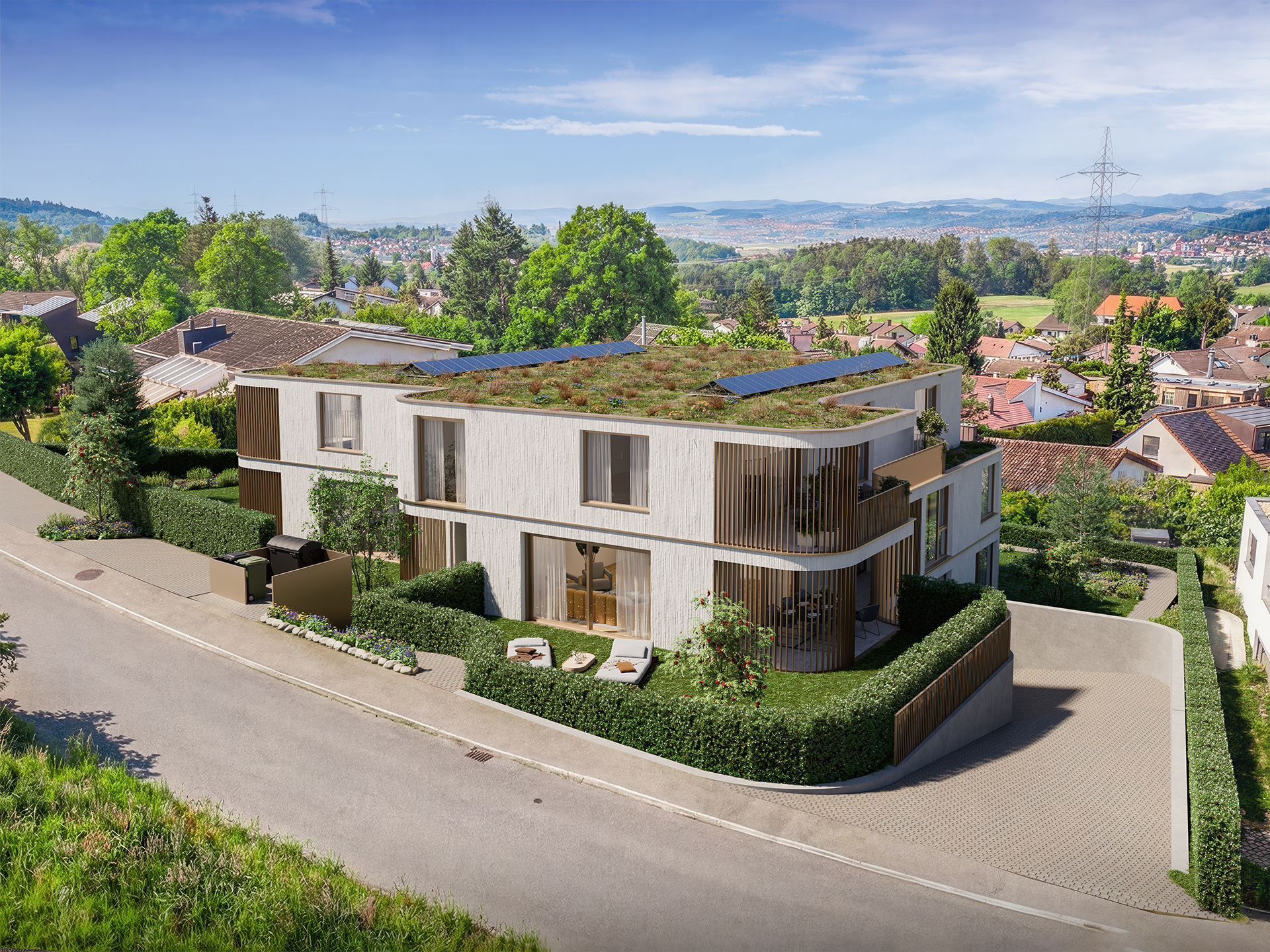 Das Projekt bietet durchdachte Grundrisse sowie helle Räume, die viel Platz zur Entfaltung lassen. Die 3.5- bis 5.5-Zimmer-Wohnungen sind mit jeweils zwei stilvollen Nasszellen ausgestattet. Grosszügige Fensterflächen sorgen für lichtdurchflutete Innenräume und einen Ausblick ins Grüne. Jede Wohnung verfügt zudem über einen eigenen Waschturm. Ein Lift verbindet alle Geschoss und garantiert einen schwellenfreien Zugang zu allen Wohneinheiten.